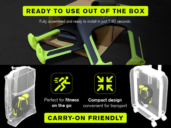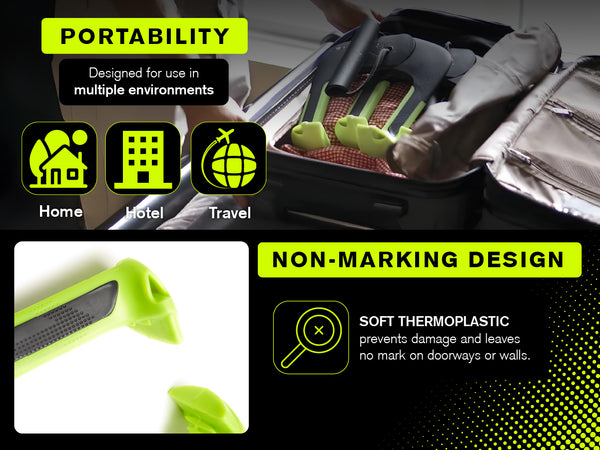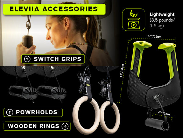 The Eleviia travel package consists of a pair of door clamps with handles, plus a Eleviia carrying bag. Maximum user weight: 250lb (113kg)